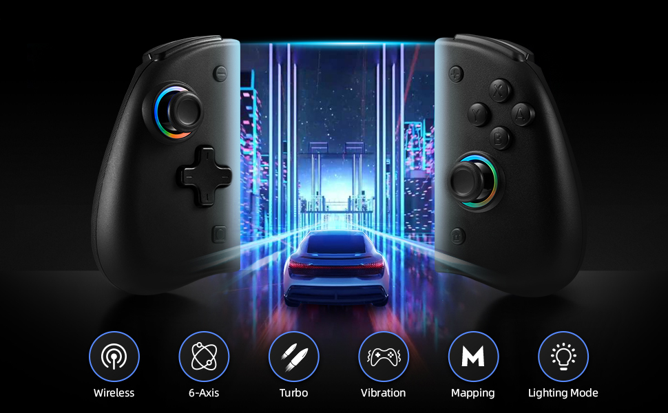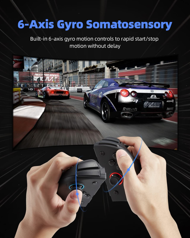 - [Turbo Function and Precise Motion Controls] Improve the game's accuracy and precision! This switch Joycon can customize the turbo with any button to free players’ fingers and adjust the turbo speed to fit different games. Joypad controllers also have built-in 6-Axis gyro motion controls to rapid start/stop motion without delay.