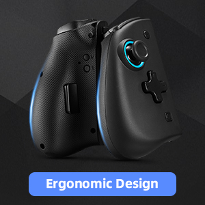 - [Ergonomic&Non-Slip Design] Ergonomic hand–fit design with Lightweight materials make the wired joycon controller game-time comfortable. Bigger buttons and joysticks avoid pressing other buttons by mistake. The back of joycon is designed with a particular anti-skid pattern, which helps increases friction and reduces the unpleasant experience caused by hand sweat.
