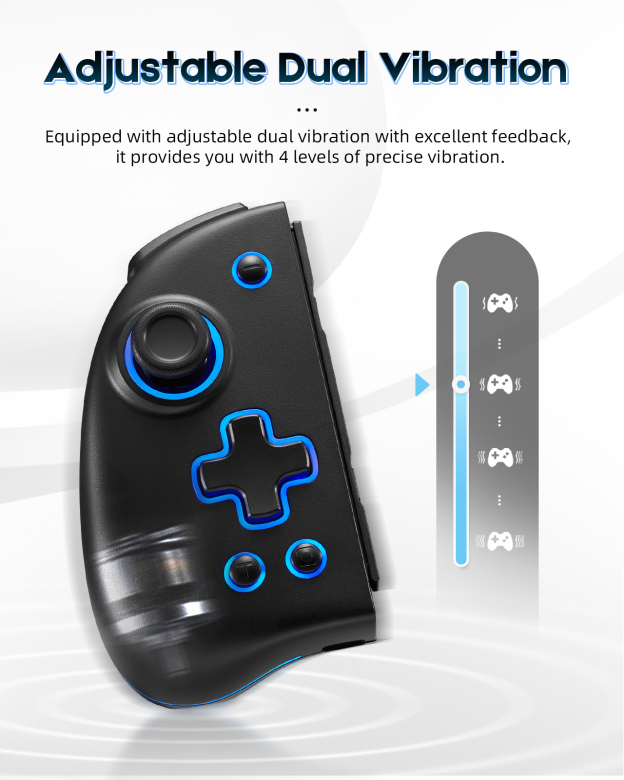 - [Dual vibration & Game Experience] Enjoy the action feelings! This switch Joycon controller is equipped with adjustable dual vibration and gives you 4-level precise vibration: 0%/30%/ 50%/75%/ 100%. Making you feel the real game experience and recording all the wonderful scenes with Screenshots.