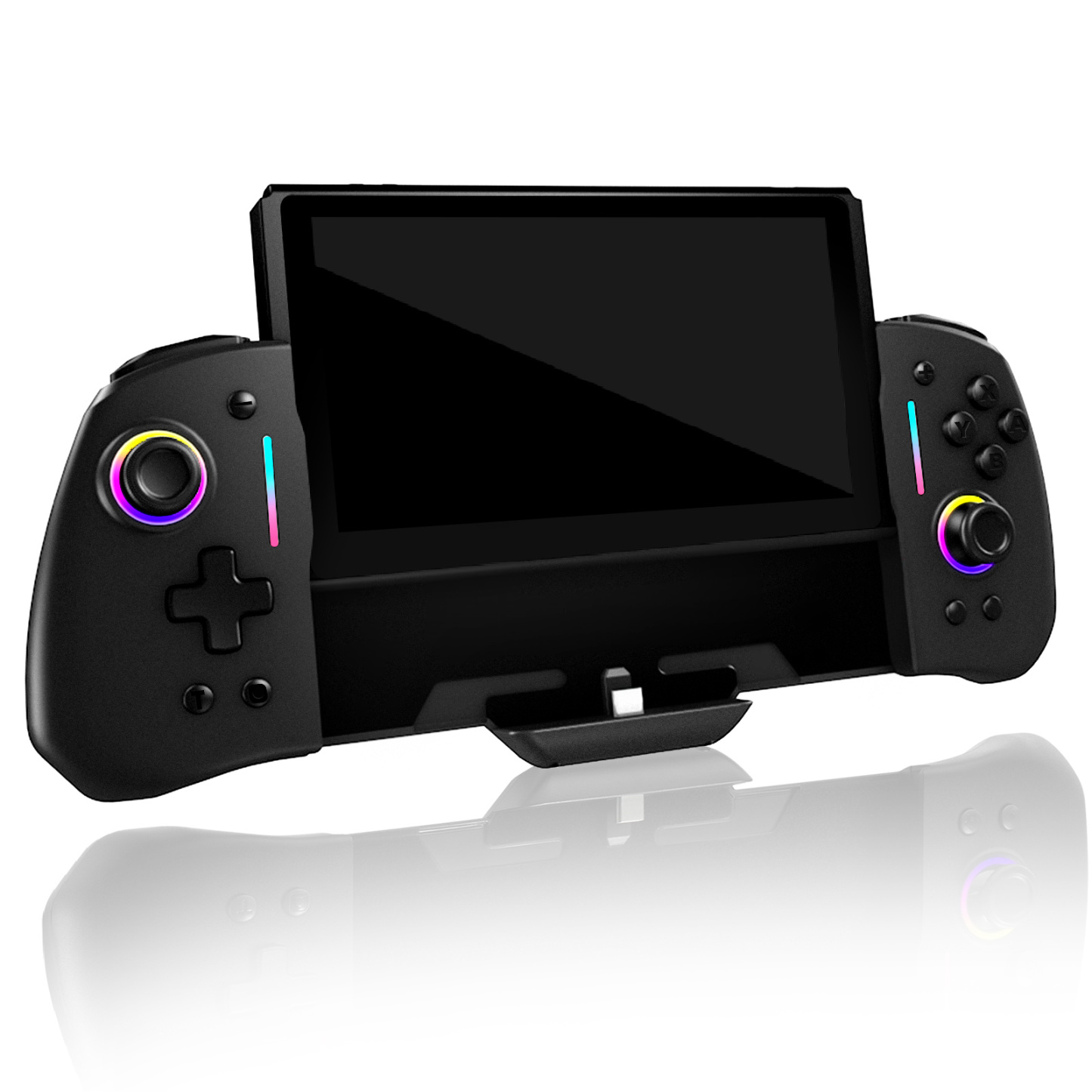 - [Comfortable Grip] The Joycon grip targets streamlined and Ergonomics design makes you feel full and comfortable. Wired Connection to the switch console in handheld mode. No discomfort after playing for a long time.