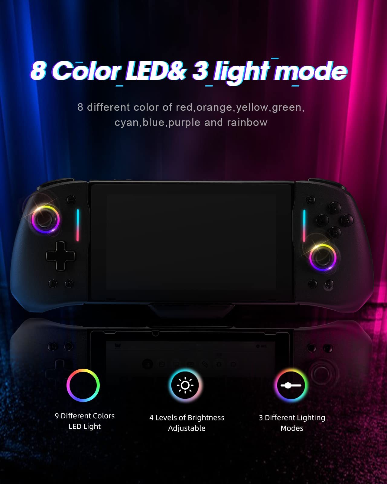 - [8 colors LED Light & Different Modes] Well-designed Adjustable LED light of 8 different colors! This is the COOLEST controller that has 7 colors & rainbow LED lights, plus different light modes. You can change the style you like with the light button!