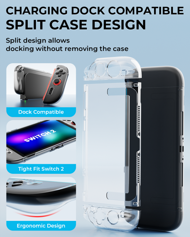- Switch 2 Case 2025: Includes 1* Carrying Case, 2* Screen Protectors, 1* Bootstrap Frame, 1* Switch Case Cover , 2* Cases for Joycon, 2* Grips for Joycon, 2* Steering Wheels, 4* Thumb Stick Caps, 1* Game Card Case - These fulfill all your basic Switch 2 accessory needs.